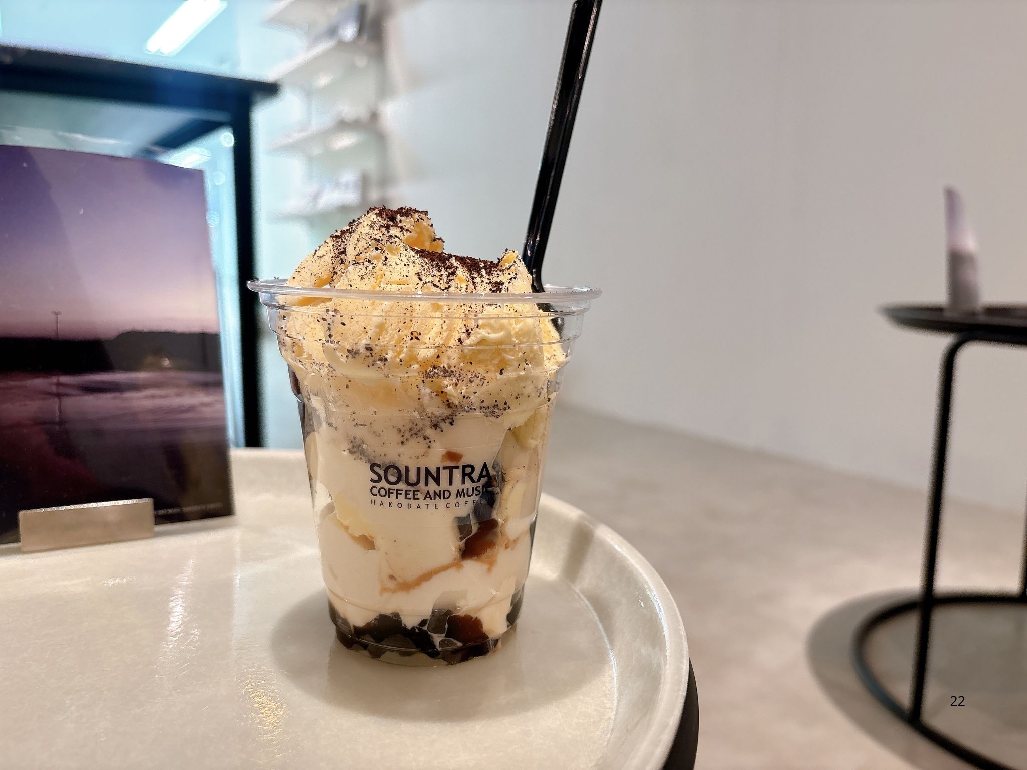 【美原】まろやかで飲みやすいコーヒーが楽しめる「SOUNTRA COFFEE AND MUSIC」 by miraistyle_admin 2025年10月14日 スタッフブログ 0 2024年12月20日に開業した函館市美原の新商業施設「グランディールイチイ」にて新たに開店した「SOUNTRA COFFEE AND MUSIC」。店内に入ると、壁に飾られた大きな写真が目を引きます。こちらの写真は函館を中心に写真活動を行っている方々の作品で美しい風景が切り取られていて、より一層おしゃれな雰囲気です。 こちらお店のテーマは「まろやかで飲みやすいコーヒー」。 コーヒーに詳しくない方でも、店主さんが丁寧に好みに合わせておすすめしてくれるので安心です。また、カフェインが苦手な方向けにデカフェも提供されている点も有難いのではないかなと思います。今回は「ミディアムブレンド」と「コーヒーパフェ」を注文しました。ミディアムブレンドは、その名の通りまろやかでとても飲みやすく、コーヒーの豊かな香りを存分に楽しめます。 コーヒーパフェは、コーヒーゼリーとバニラアイス、そして白いコーヒープリンが層になっていて、一口食べると幸せな気分になります。甘すぎないので、コーヒーと一緒に頼むのもおすすめです。店頭にはオリジナル商品が並んでおり、ドリップコーヒーや店内にもある美しい景色を閉じ込めたポストカード、また「SOUNTRA COFFEE AND MUSIC」と言う店名にふさわしくCDとコーヒー豆のセットなどもあります。日頃の感謝を伝えるギフトにもぴったりなのではないでしょうか。お買い物の休憩におしゃれな空間で、まろやかなコーヒーと美味しいスイーツに癒されること間違いなしです。 SOUNTRA COFFEE AND MUSIC 函館市美原グランディールイチイ 地下1階 11:00~18:00 無休(たまに不定休あり) 有 インスタ
