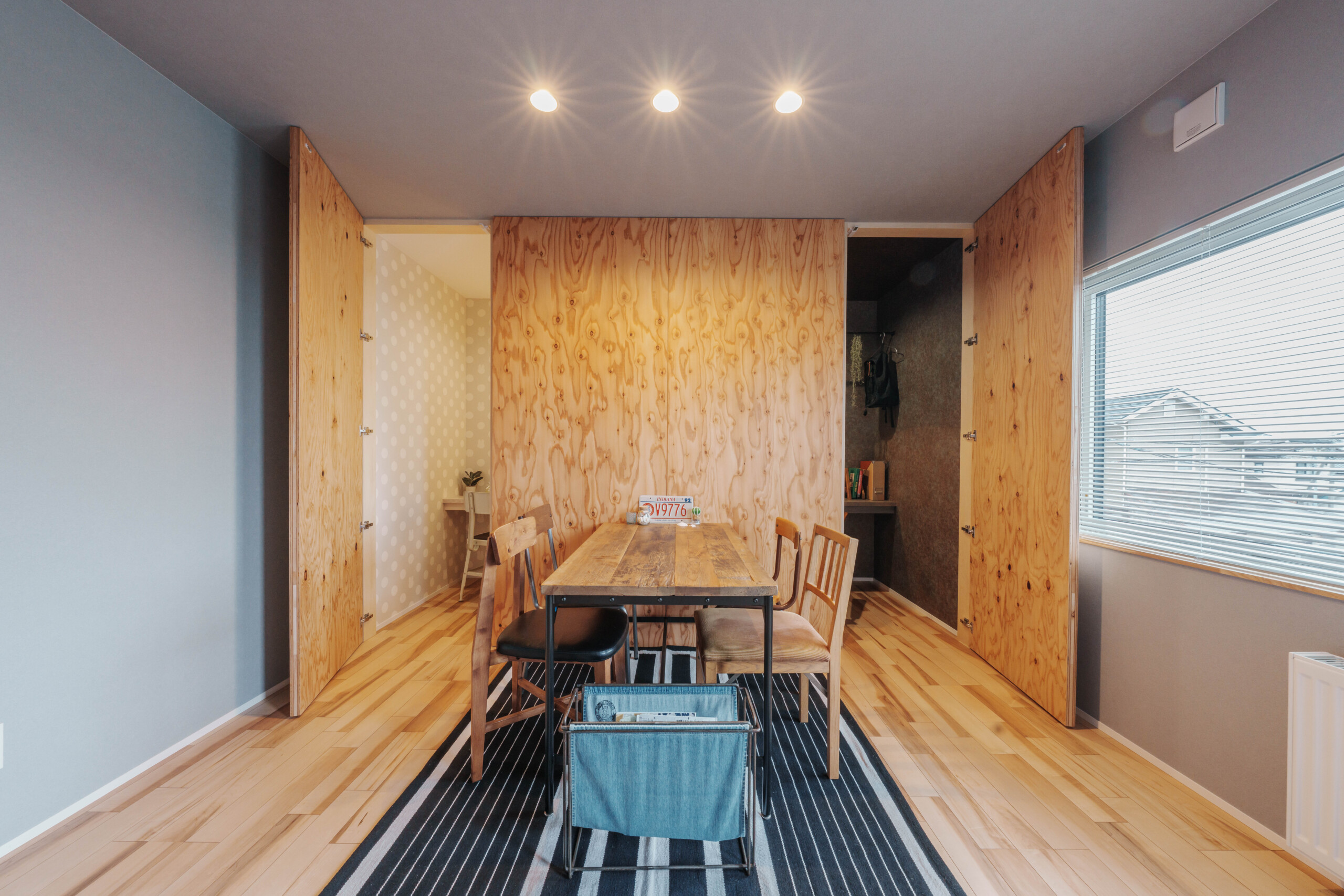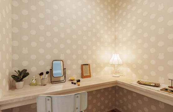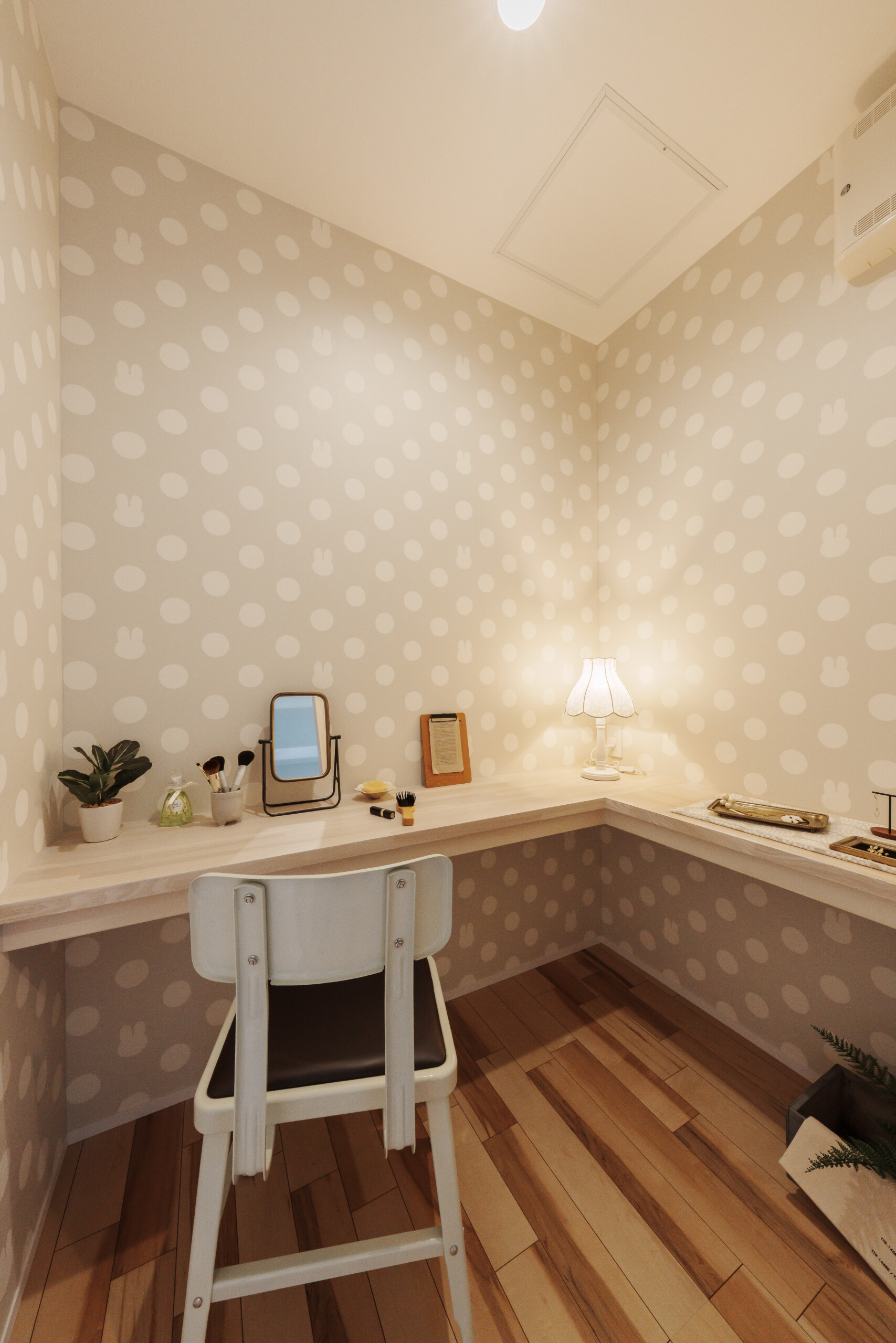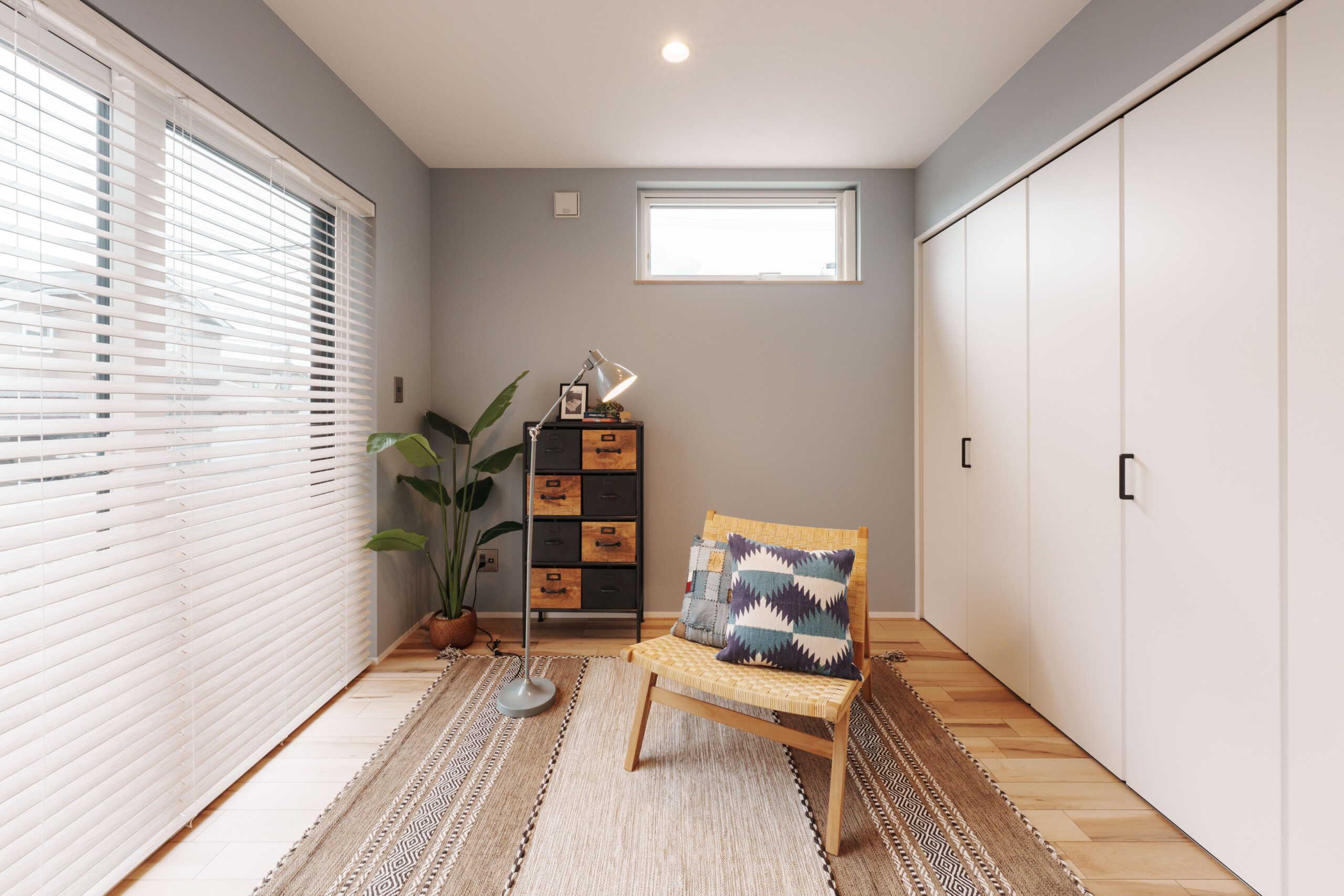 主寝室には、ふたつの隠し部屋を設けて遊び心をプラス。お子様のお部屋は「千と千尋の神隠し」に登場する“坊の部屋”をイメージし、昼と夜を表すクロスで個性的に仕上げています。ご入居後には、太陽のオブジェが加わり、より物語のある空間へと完成予定です。