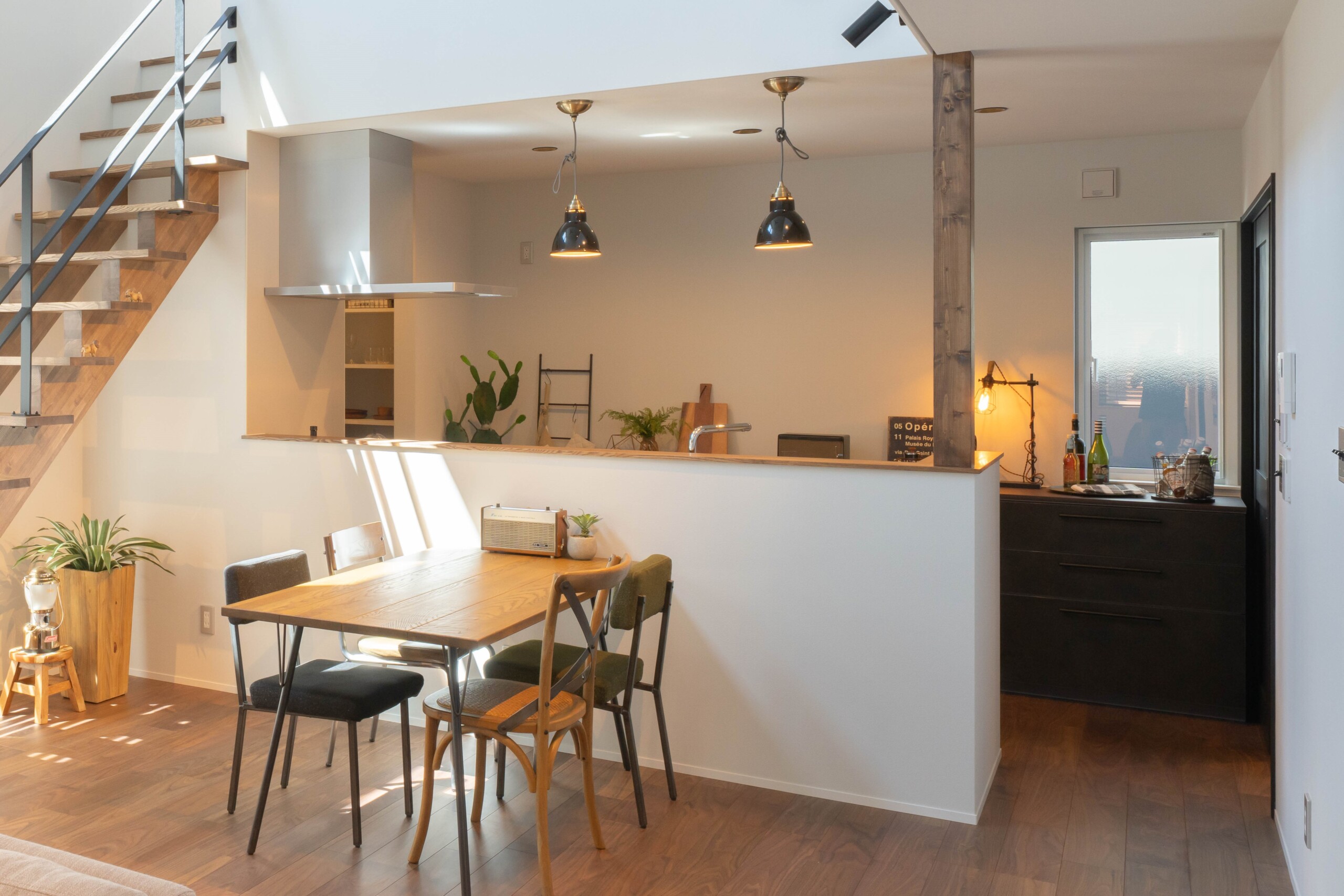 家族の気配を全身で感じられる、開放感にあふれたダイニングです。