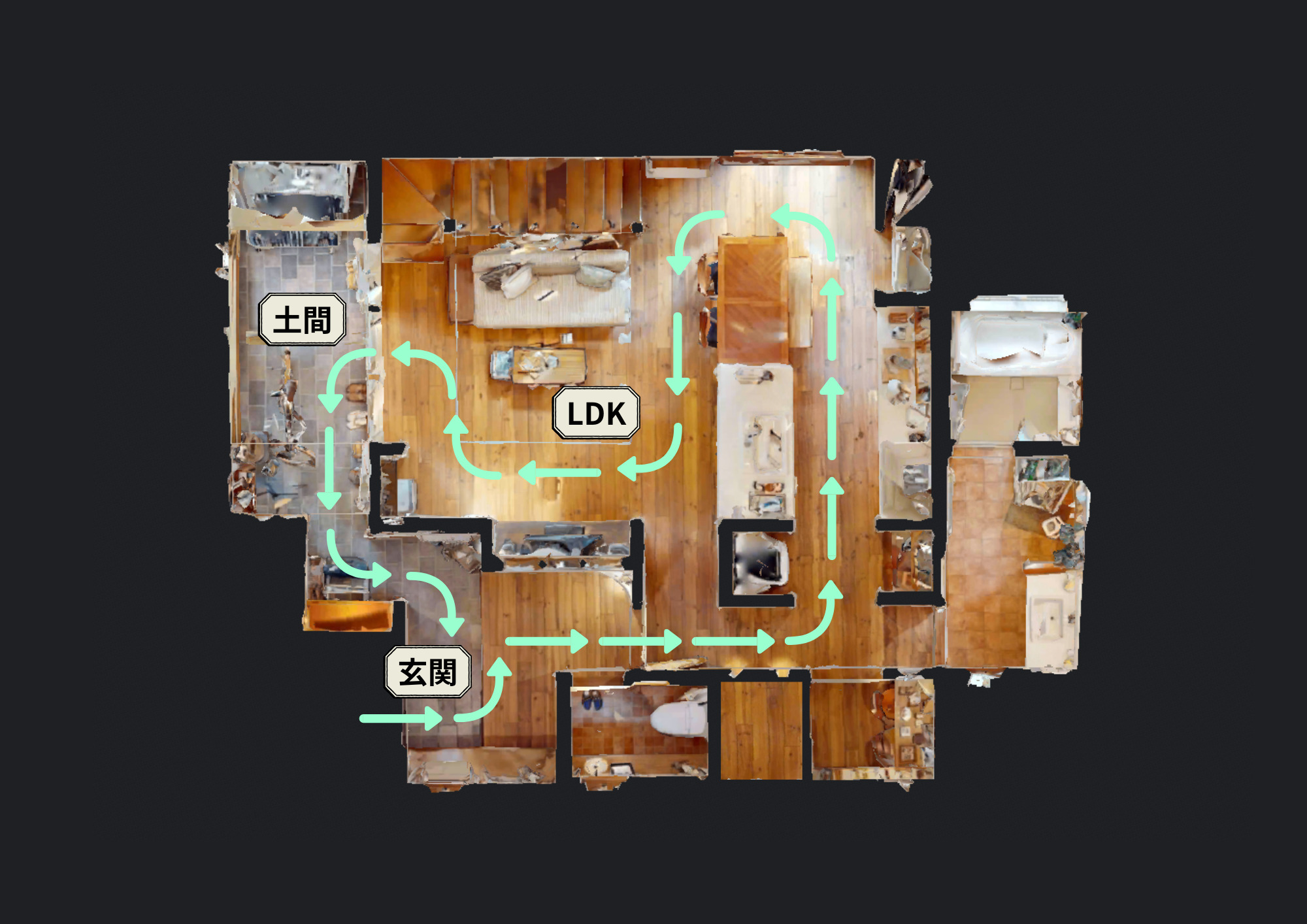 玄関→LDK→土間→玄関