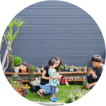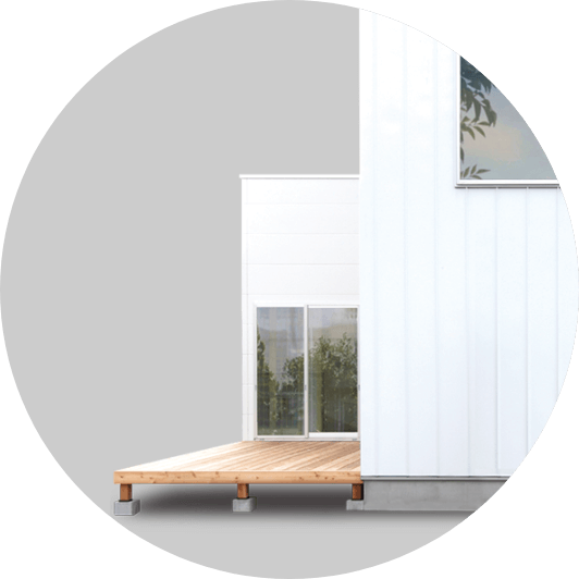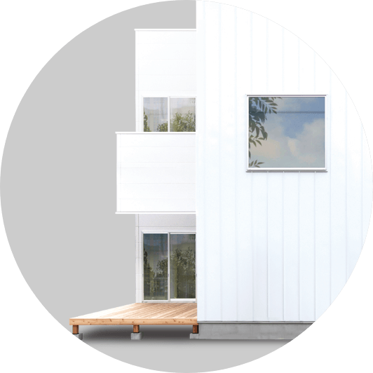 玄関から直接行き来できる便利なガレージをプラス。セキュリティはもちろん、クルマも雨ざらしになることもありません。屋上をバルコニーとしても無駄無く活用。「クルマは、もうひとりの家族」。そんな想いをカタチにできます。