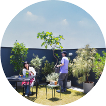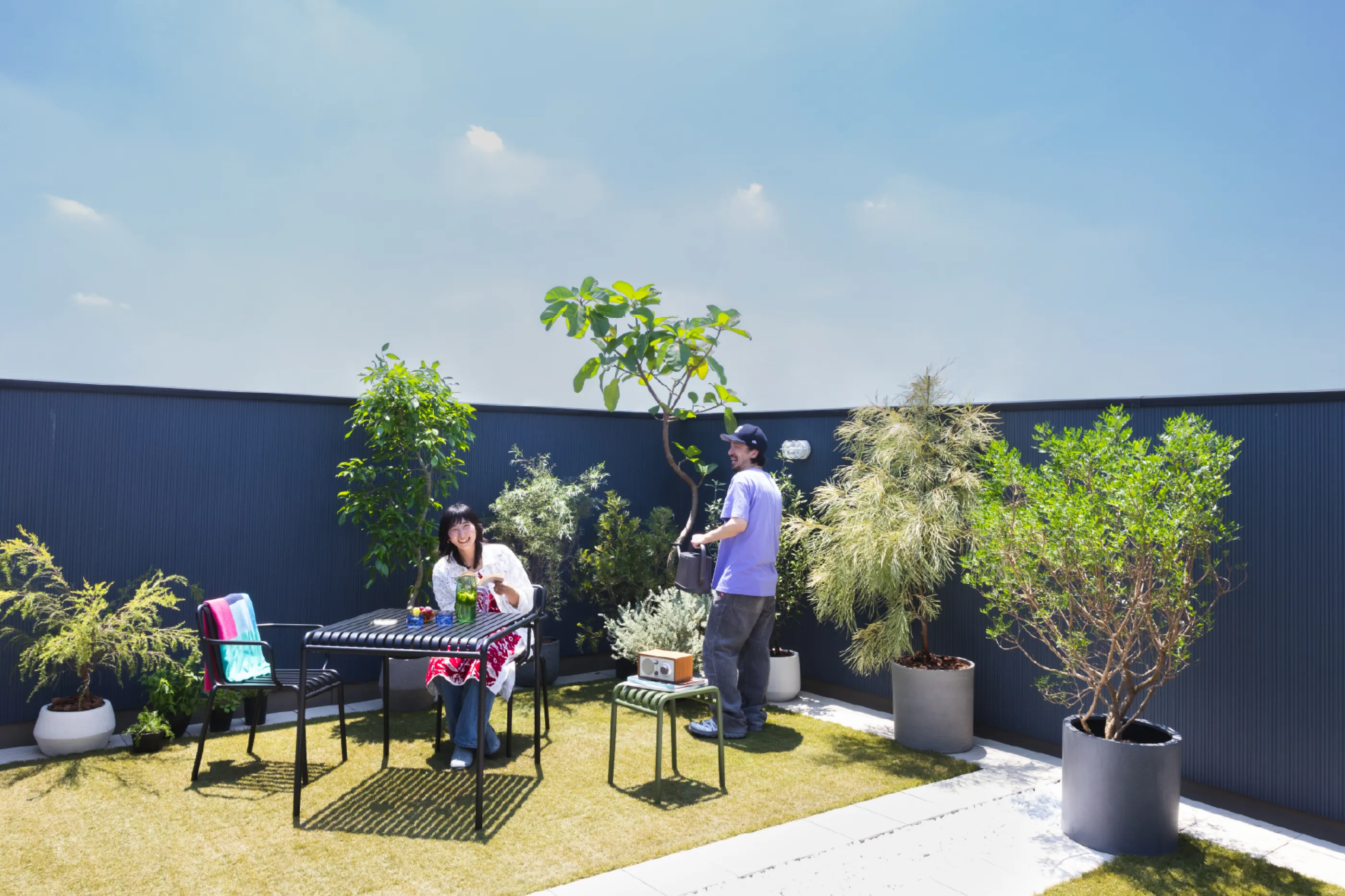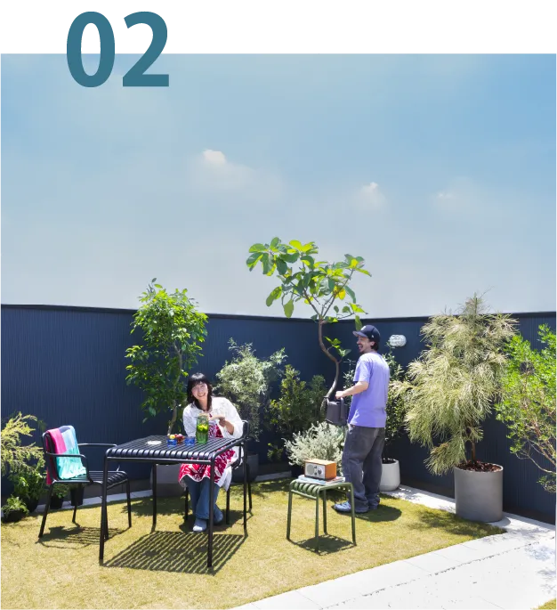 屋上へ続く階段を昇ると、そこにはワンフロア分の広々バルコニー。周囲の視線が気にならない開放感あふれるプライベートゾーンになり、空を感じながら、ガーデニングスペースとしても楽しめ、その魅力は無限大。