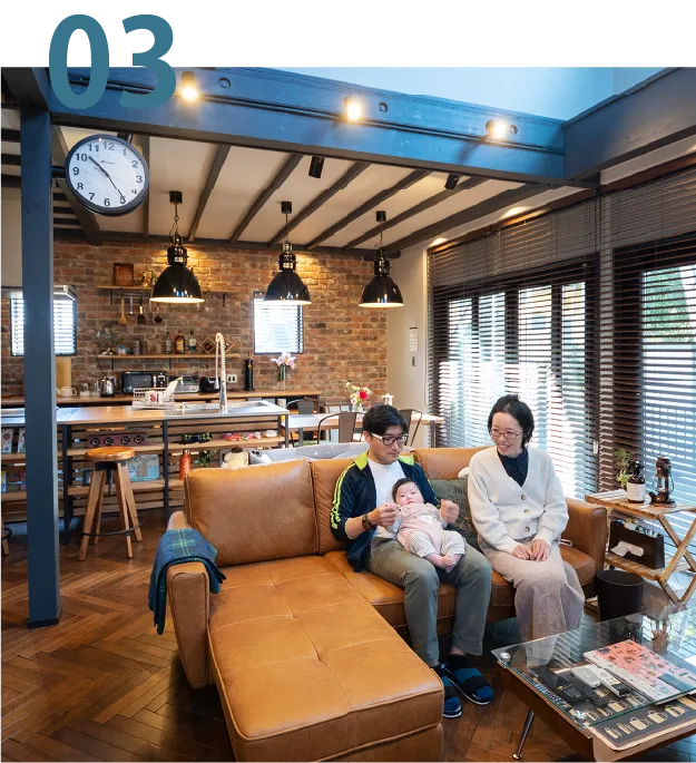 アウトドア用品やベビーカー、濡れた雨具も気兼ねなく置けて、玄関が散らかりません。趣味の作業場にもなる万能空間。内と外をつなぐ“ちょうどいい余白”が、暮らしに自由さをもたらします。