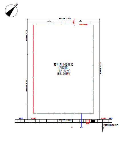 | 接道状況 | 南側幅員8mの公道に11.80m接道 | 私道面積 | ― |