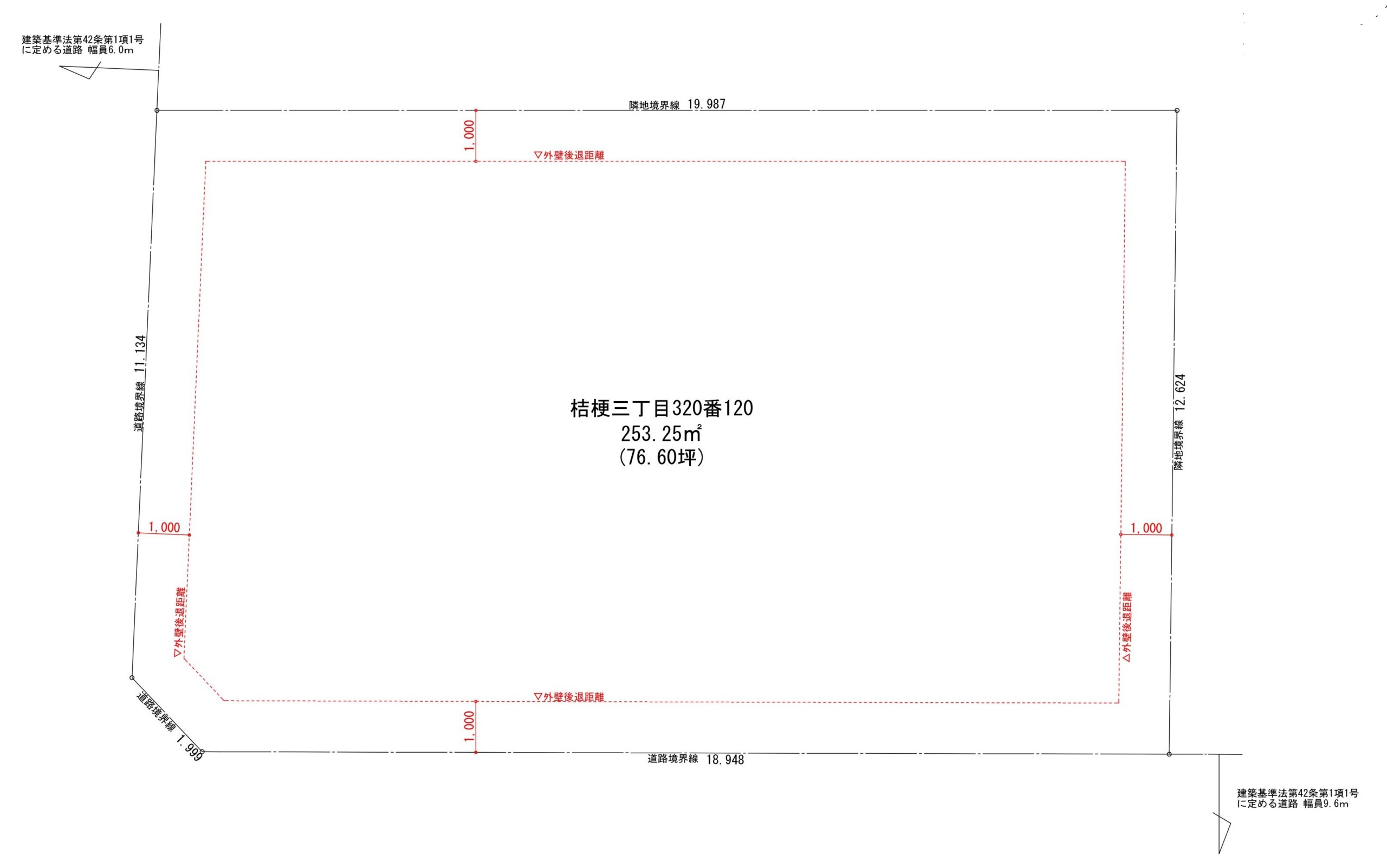 | 接道状況 | 南西側幅員6mの公道に11.13m接道/南東側幅員9.6mの公道に18.94m接道 |