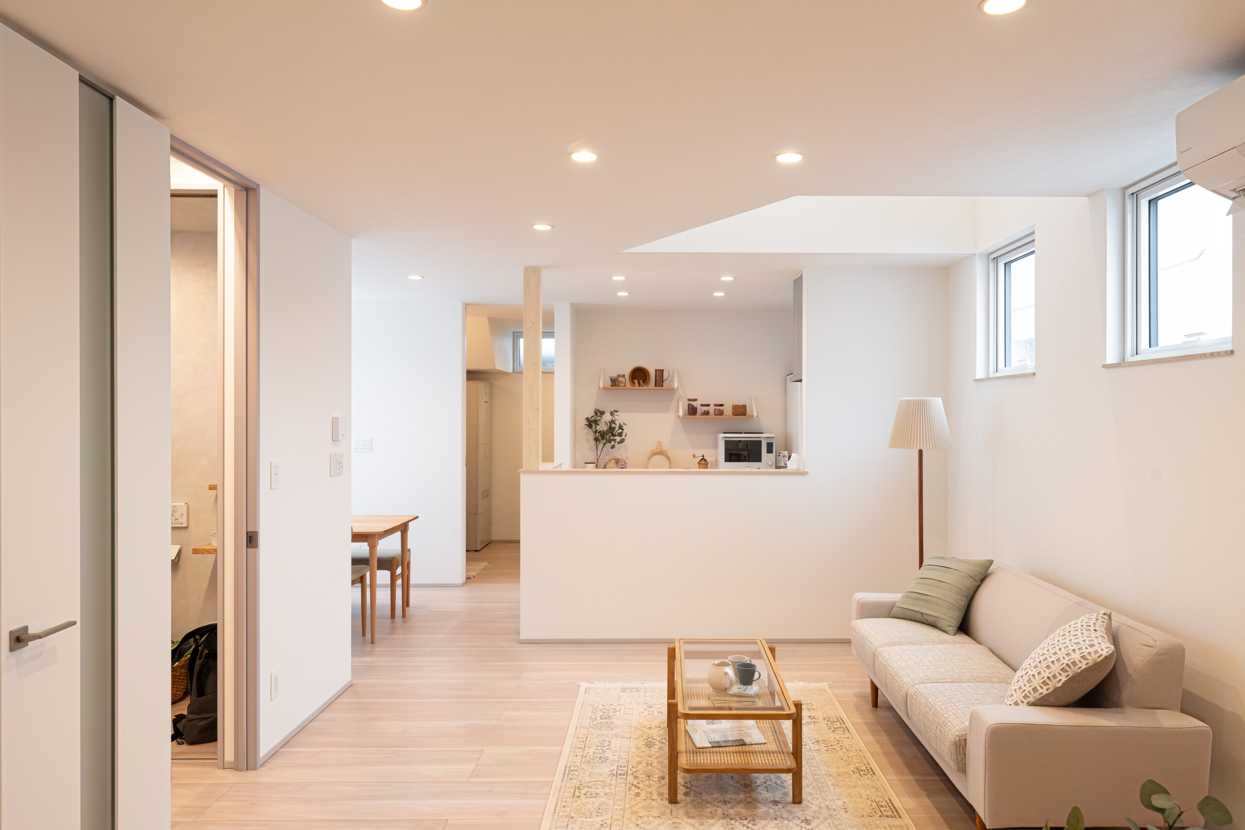外観・内観は明るいホワイトベースのモダンデザイン。